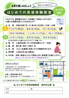 | 概要 | どなたでも、普段着のままで、お気軽にご参加いただける茶道体験教室です。